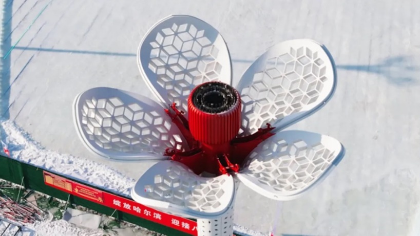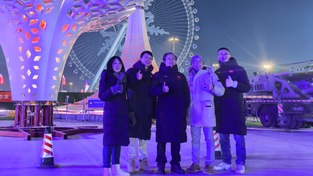 The torch tower was designed by teachers and students from the Academy of Arts & Design, Tsinghua University (AADTHU). The structure, a new landmark at the Harbin Ice and Snow World Park on Sun Island, now stands as a testament to months of dedication.
