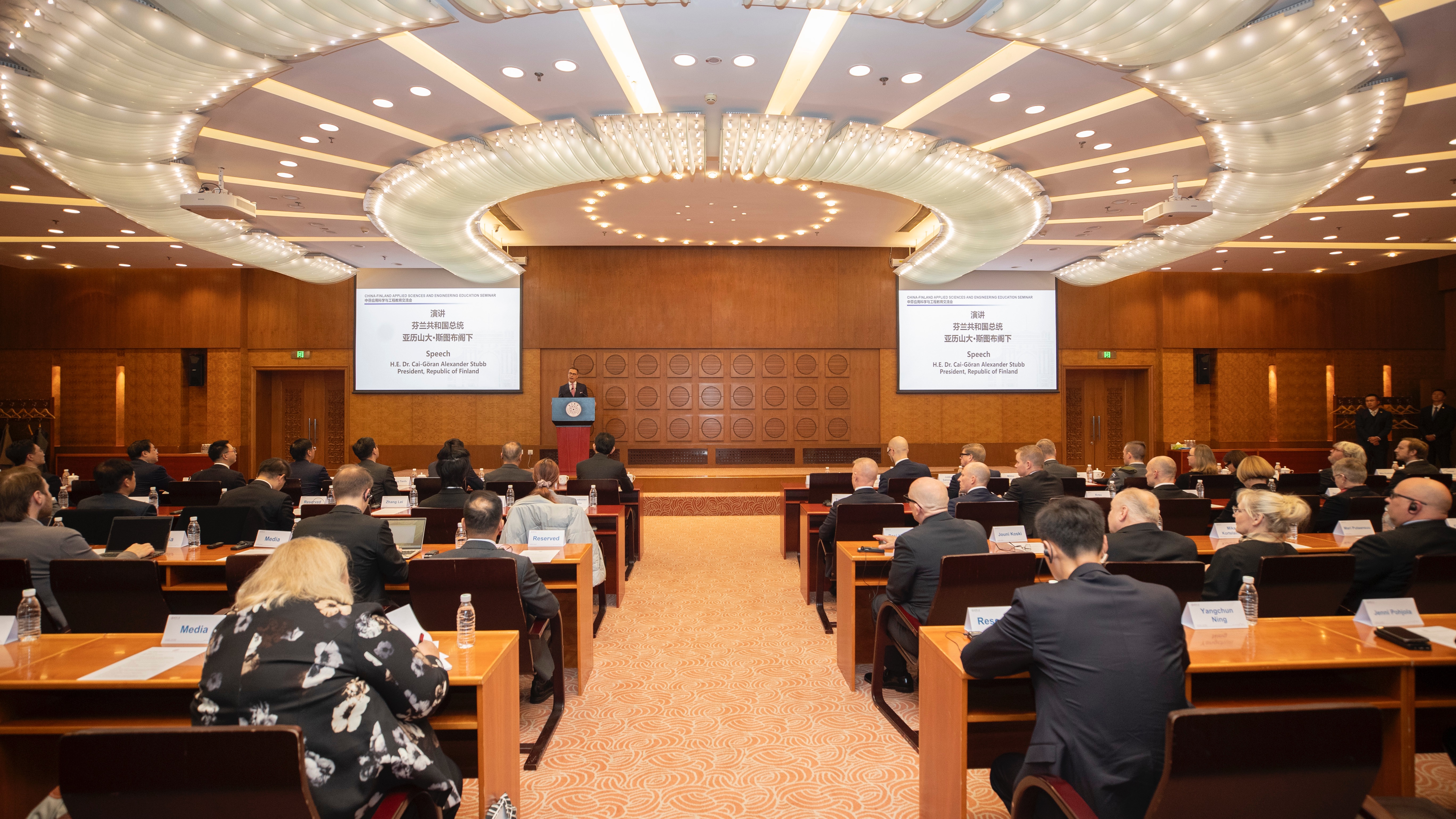 On the morning of October 29, President Cai-Göran Alexander Stubb of the Republic of Finland visited Tsinghua University and participated in the signing of a Memorandum of Understanding (MOU) between the university and the China-Network of Finnish Universities of Applied Sciences (UAS).