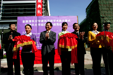 Among those present at the ribbon-cutting ceremony March 22 were Beijing Vice Mayor Fan Boyuan, Tsinghua Vice President Cen Zhangzhi, and officials from the Ministry of Science and Technology, Ministry of Construction, the Science and Technology Committee of Beijing, and the Beijing Reform and Development Committee. Also on March 22, the first International Building Energy Efficiency Forum (IBEEF) opened at Tsinghua. For the following week, the LED building will open to the public.