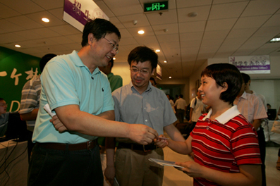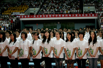 Tsinghua President Gu Binglin, University Council Chairman Hu Heping, Tsinghua Deputy President Chen Jining, Tsinghua Vice President Zhang Fengchang, Tsinghua Vice President Xie Weihe, Tsinghua University Council Vice Chairperson Han Jingyang, Tsinghua Vice President Yuan Si, Tsinghua University Council Vice Chairperson Shi Zongkai, Tsinghua University Vice Chairperson Deng Wei, and Tsinghua University Vice President Qiu Yong attended the gathering for the more than 4,200 incoming students.