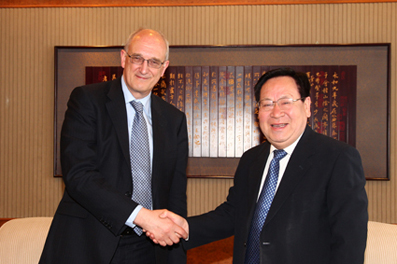 Tsinghua University President Gu Binglin had a discussion with Sir Borysiewicz prior to the speech. During their conversation, President Gu and Sir Borysiewicz reviewed the cooperation between Tsinghua and the University of Cambridge, especially the Tsinghua-Cambridge-MIT low carbon alliance established in 2009, and expressed hope that collaboration could be expanded between their two universities in the coming years. Tsinghua Vice President Yuan Si and Tsinghua University Vice Chairperson He Jiankun also participated in the discussion.