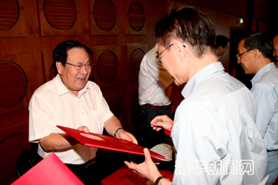 An assembly was held in Tsinghua's Main Building on June 2 to recognize excellence in teaching and research in 2010. Tsinghua University President Gu Binglin, Deputy President Chen Jining, Tsinghua Vice Presidents Kang Kejun, Xie Weihe, Cheng Jianping, and Yuan Si, and University Council Vice Chairperson Deng Wei attended the formal gathering to honor faculty members who had won national prizes for their outstanding endeavors.