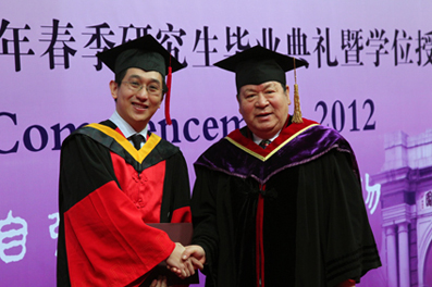 More than 1,200 graduate students received degrees at Tsinghua University's 2012 Spring Graduate Commencement Ceremony on the morning of January 17th. Among them, 328 earned doctorates and 909 received master's degrees.