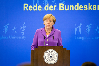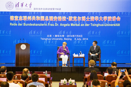 German Chancellor Angela Merkel delivered a speech at Tsinghua