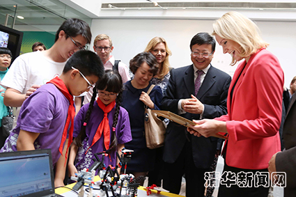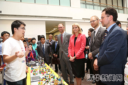 Prime Minister Helle Thorning-Schmidt of Denmark visited Tsinghua University on September 11. CEO of the LEGO Group Jørgen Vig Knudstorp accompanied her on the visit. The Prime Minister joined a briefing and lunch attended by Du Zhanyuan, Vice Minister of Education and Chen Jining, President of Tsinghua University that day.