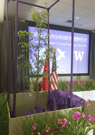 During his visit to Seattle, Chinese President Xi Jinping met with Tsinghua President Qiu Yong, University of Washington Interim President Ana Mari Cauce, and Microsoft President Brad Smith. President Xi presented a China originated sequoia as a gift to be planted at the new Global Innovation Exchange (GIX) facility. Peng Liyuan, wife of Chinese President Xi Jinping, participated in the event.