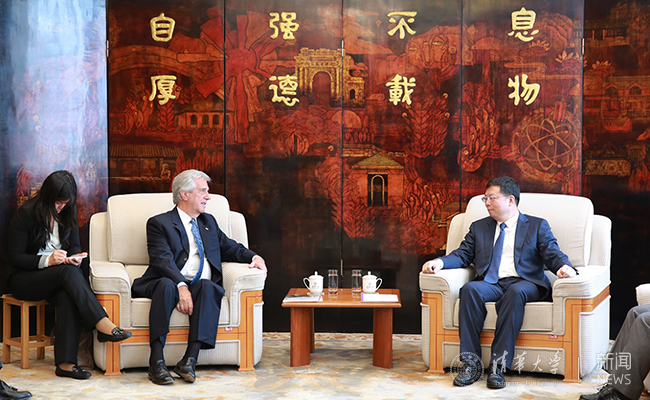 Uruguayan President Tabare Ramon Vazquez Rosas paid a visit to Tsinghua University on October 13th and delivered a speech in the Tsinghua Global Vision Lectures Series. Tsinghua University President Qiu Yong had a discussion with President Tabare Vazquez prior to the speech.