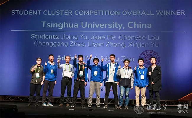 The Tsinghua team who took part in the competition are composed of 6 undergraduate students: Yu Jiping, Yu Xinjian, He Jiaao, Zheng Liyan, and Zhao Chenggang, who are all from DCST and Lou Chenyao, from the Institute for Interdisciplinary Information Sciences. Technical support was provided by Cao Huanqi, Feng Guanyu and Wang Miao, graduate students of the Institute of High-Performance Computing in DCST, who have participated in many international competitions. The advisors are Associate Professor Zhai Jidong and Postdoctoral Researcher Han Wentao from DCST. Meanwhile, five undergraduate students: Tang Shizhi, Chen Yu, Gu Yuxian, Chen Shengqi and Zhang Chen, also participated in the training.