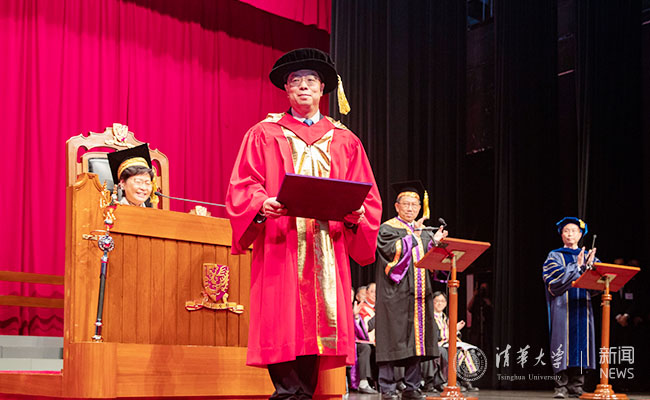 More than 1500 participants were present at the conferment ceremony, including Council Chairman of the Chinese University of Hong Kong Dr. Leung Nai-pang, and from Tsinghua University - Former President Gu Binglin, Vice President and Provost Yang Bin, Assistant President and Director of the Academic Affairs Office Peng Gang, and alumni representatives.