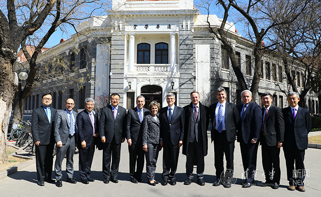 On March 21st, Professor Lawrence Bacow, President of Harvard University, visited Tsinghua University. Tsinghua University President Qiu Yong, Vice President and Provost Yang Bin, and the guests had a meeting at Gongziting.