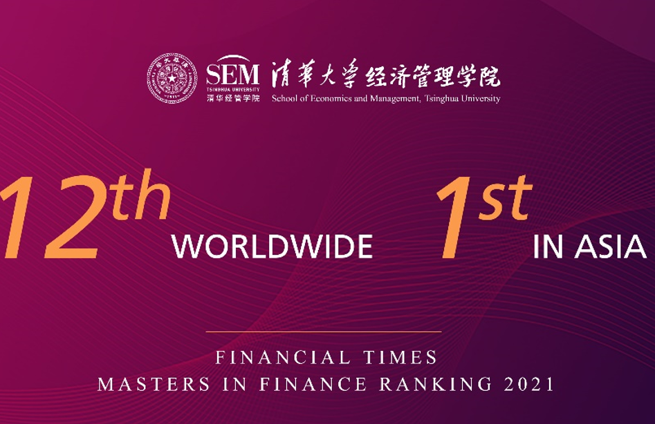 The Financial Times published its 2021 rankings of the Master’s in Finance degree Pre-Experience on June 21, 2021. The Master of Finance (MoF) of Tsinghua University School of Economics and Management (SEM) ranked 12th worldwide and 1st in Asia.