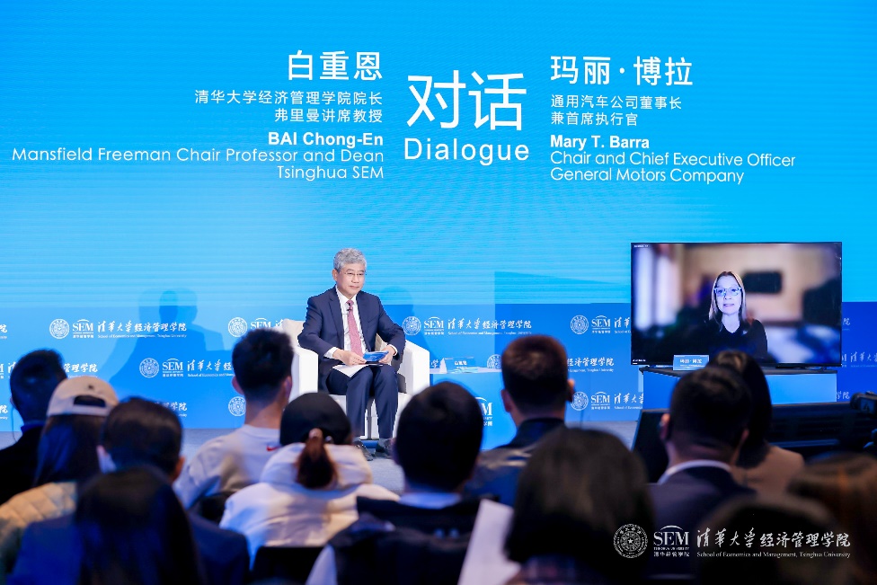BAI Chong-En, dean of Tsinghua SEM, and Mary T. Barra, chair and CEO of GM, attended the event via video link to discuss topics such as technology, carbon neutrality and talent cultivation.