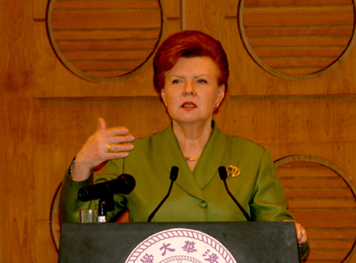 (Tsinghua News Centre) Dr. Vaira Vike-Freiberga, President of the Republic of Latvia, told students and faculty in a speech this week that a goal of her presidency is to strengthen every aspect of the relationship between Latvia and China.