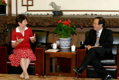 Prof. Alison Richard, Vice Chancellor of University of Cambridge, visited Tsinghua University on August 1. Tsinghua President Gu Binglin and Vice President Gong Ke met and had a friendly talk with Prof. Richard.