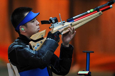 Tsinghua student Cao Yifei and his teammates took the gold medal in the men's 10 meter Air Rifle team event at the 16th Asian Games on November 13. Their total score in the competition was 1,784 points.