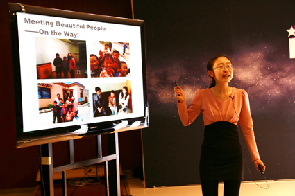 For this week, the tradition goes on. Wen Chongyi, a member of Tsinghua voluntary teaching team for desolate areas in Western China, talked about her experience teaching in Huangnan Tibetan Autonomous Region, Qinghai Province this summer. “Meeting beautiful people in a remotely beautiful places is an unforgettable memory for me.” She also articulated the project called Supporting Dream, demonstrating the working framework which includes a series of affiliated programs such as book donation and mentor guidelines in her well-organized power point and high-pitched English speech.