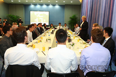(By Long Yifan)Hannelore Kraft, governor of North Rhine-Westphalia, visited Tsinghua on April 20. She communicated with the students in the Tsinghua-RWTH Aachen joint program for master degree and attended a seminar held in the joint laboratory. University Council Chairperson Chen Xu held a meeting for Kraft.