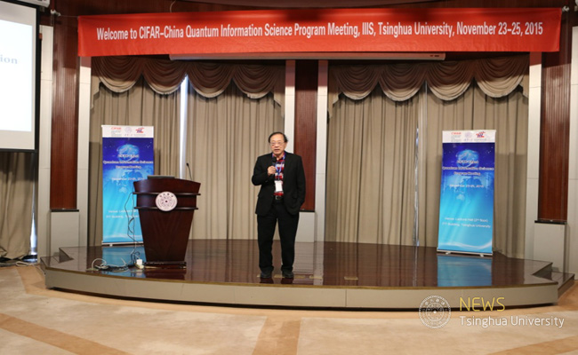 The CIFAR-China Quantum Information Science Program Meeting 2015, co-organized by The Institute for Interdisciplinary Information Sciences (IIIS), Tsinghua University, and Canadian Institute for Advanced Research (CIFAR), kicked off at the Lecture Hall, FIT Building, Nov. 23, Over 50 prominent researchers from both China and Canada attended the 3-day meeting.