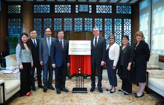 On May 17th, President Qiu Yong of Tsinghua University and President and Vice-Chancellor David H. Turpin of the University of Alberta met for the opening ceremony of the Tsinghua University-University of Alberta Joint Research Center for Future Energy and Environment. Turpin is the 13th president of the University of Alberta, which is one of the leading Canadian universities in Canada-China academic relations. Both presidents expressed their wish to continually improve cooperation between the two universities.