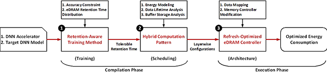 The growing size of deep neural networks (DNNs) requires large amounts of on-chip storage. In many DNN accelerators, their limited on-chip memory capacity causes massive off-chip memory access and leads to very high system energy consumption. So memory optimization is an important problem in AI chip design. Tsinghua Reconfigurable Computing Team proposed a Retention-Aware Neural Acceleration (RANA) framework for DNN accelerators to save total system energy consumption with refresh-optimized embedded DRAM (eDRAM). The RANA framework includes three levels of techniques: a retention-aware training method, a hybrid computation pattern and a refresh-optimized eDRAM controller. At the training level, DNN’s error resilience is exploited in training to improve eDRAM’s tolerable retention time. At the scheduling level, RANA assigns to each DNN layer a computation pattern that consumes the lowest energy. At the architecture level, a refresh-optimized eDRAM controller is proposed to alleviate unnecessary refresh operations. Owing to the RANA framework, 99.7% eDRAM refresh operations can be removed with negligible performance and accuracy loss. Compared with the conventional SRAM-based DNN accelerator, an eDRAM-based DNN accelerator strengthened by RANA can save 41.7% off-chip memory access and 66.2% system energy consumption, with the same area cost. The proposed framework significantly improves the energy efficiency of AI Chips.
