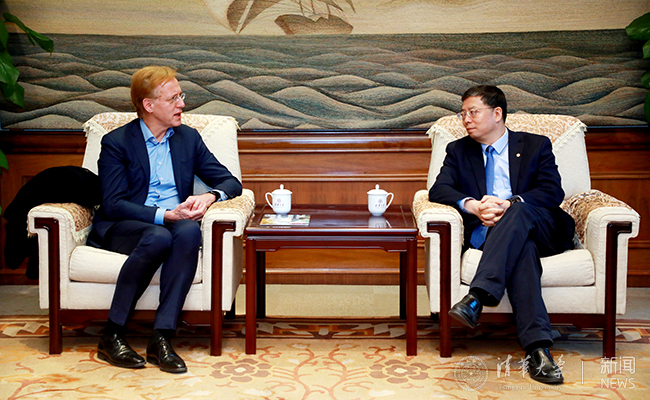 On the afternoon of January 9th 2020, the President of Tsinghua University, Professor Qiu Yong, met with Professor Robbert Dijkgraaf, Director, and Leon Levy, Professor of the Institute for Advanced Study (IAS), at Princeton, New Jersey. Elizabeth Boluch Wood, IAS Chief Development Officer and Associate Director for Communications and Development, accompanied Professor Dijkgraaf on their visit.
