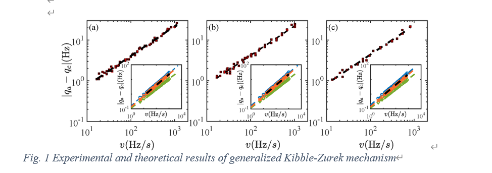 However, for first-order quantum phase transitions, multiple phases coexist at the transition point, and the KZM is usually not applicable. Prof. Lu-Ming Duan’s research team theoretically generalized traditional KZM to a first-order quantum phase transition by considering the energy gap between the maximally occupied state (corresponding to the metastable phase) and its corresponding first excited state, and found very good agreement with numerical simulation results. Their experimental measurements further support the generalized KZM (see Fig. 1). These results open the door for further exploring the generalized KZM to understand the dynamics across first-order quantum phase transitions.