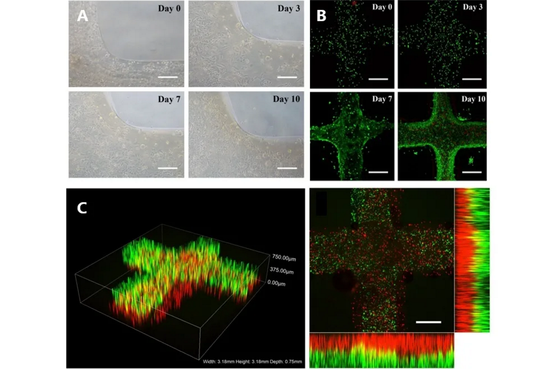 The tests showed that printed cells remained at high viability and steady proliferation, which indicated good biological function of the cells in the printed tissue.