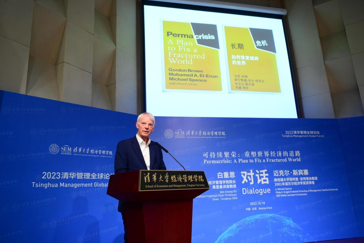 The 2023 Tsinghua Management Global Forum was held in Tsinghua University on Wednesday. The forum featured a dialogue with Michael Spence, professor emeritus of management of Standard University and 2001 Nobel laureate in economics, who shared his insights on ways to fix the world economy.