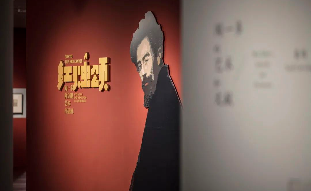 The portrait of his father, depicting a middle-aged Wen Yiduo surrounded by a pyramid of burning red candles, in sharp contrast with his hair, thick eyebrows, beard and gown, all black, delivering a sense of solemnity and determination, is also on display.