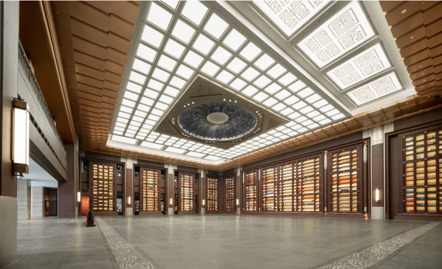 The Wenhua Hall is the main exhibition venue of the China National Archives of Publications and Culture. At the center of the Wenhua Hall is the National Study. More than 30,000 classic books from ancient and modern times are kept here.