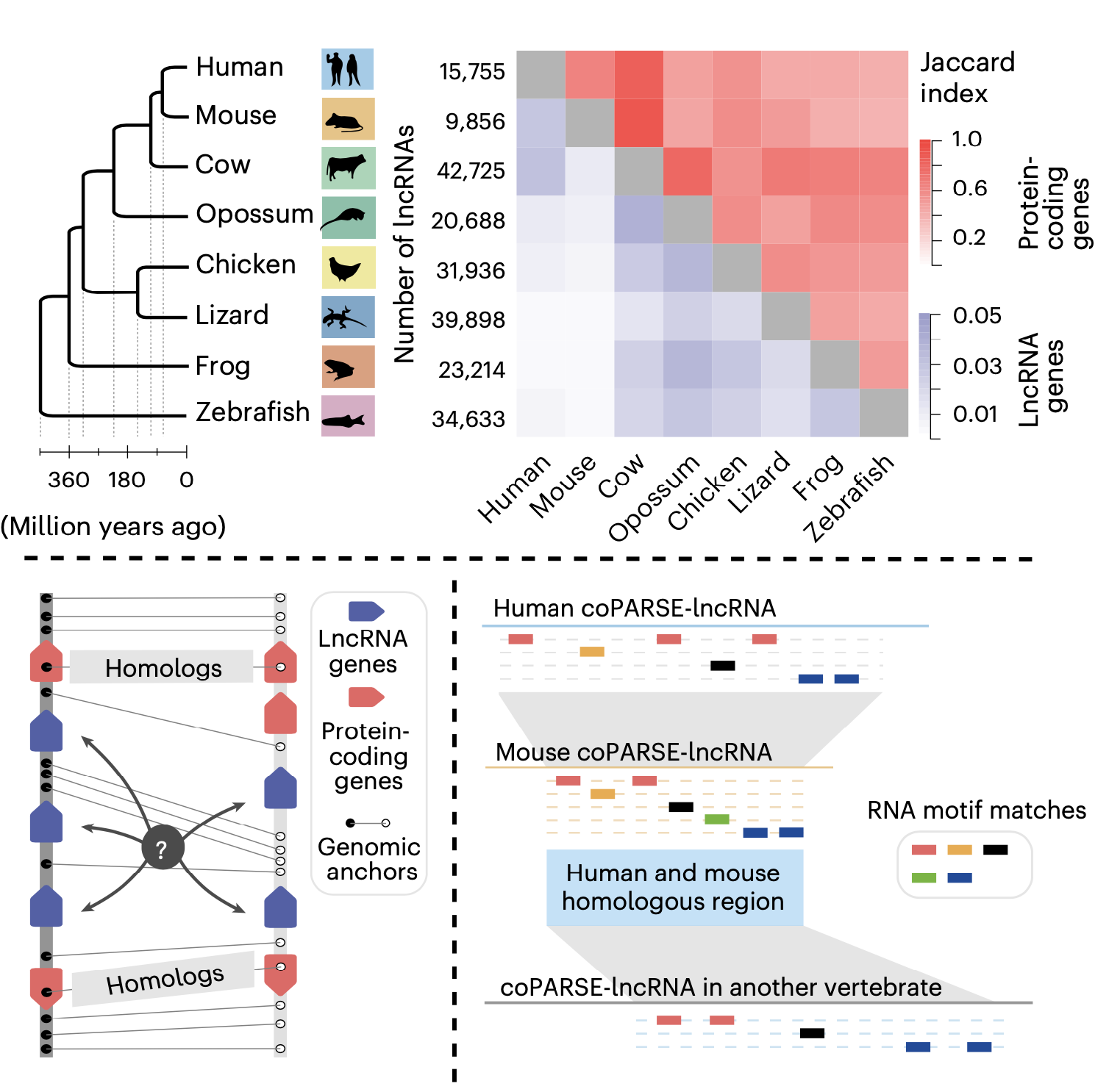 This study introduces a computational method (lncHOME), which integrates genome comparison and machine learning to identify lncRNAs with conserved genomic positions and patterns of RNA binding protein (RBP) binding sites across eight vertebrate species; these lncRNAs were defined as coPARSE-lncRNAs (Figure 1).
