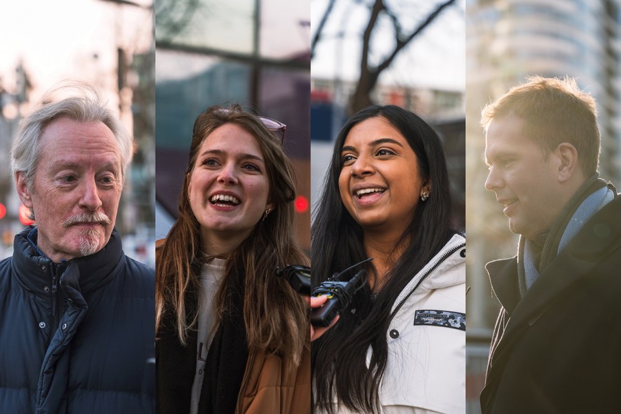 The combo photo shows that Xinhua's China Chat team interviews expats on the streets of Beijing, capital of China, Jan. 11, 2022. (Xinhua/Xu Yongzheng)