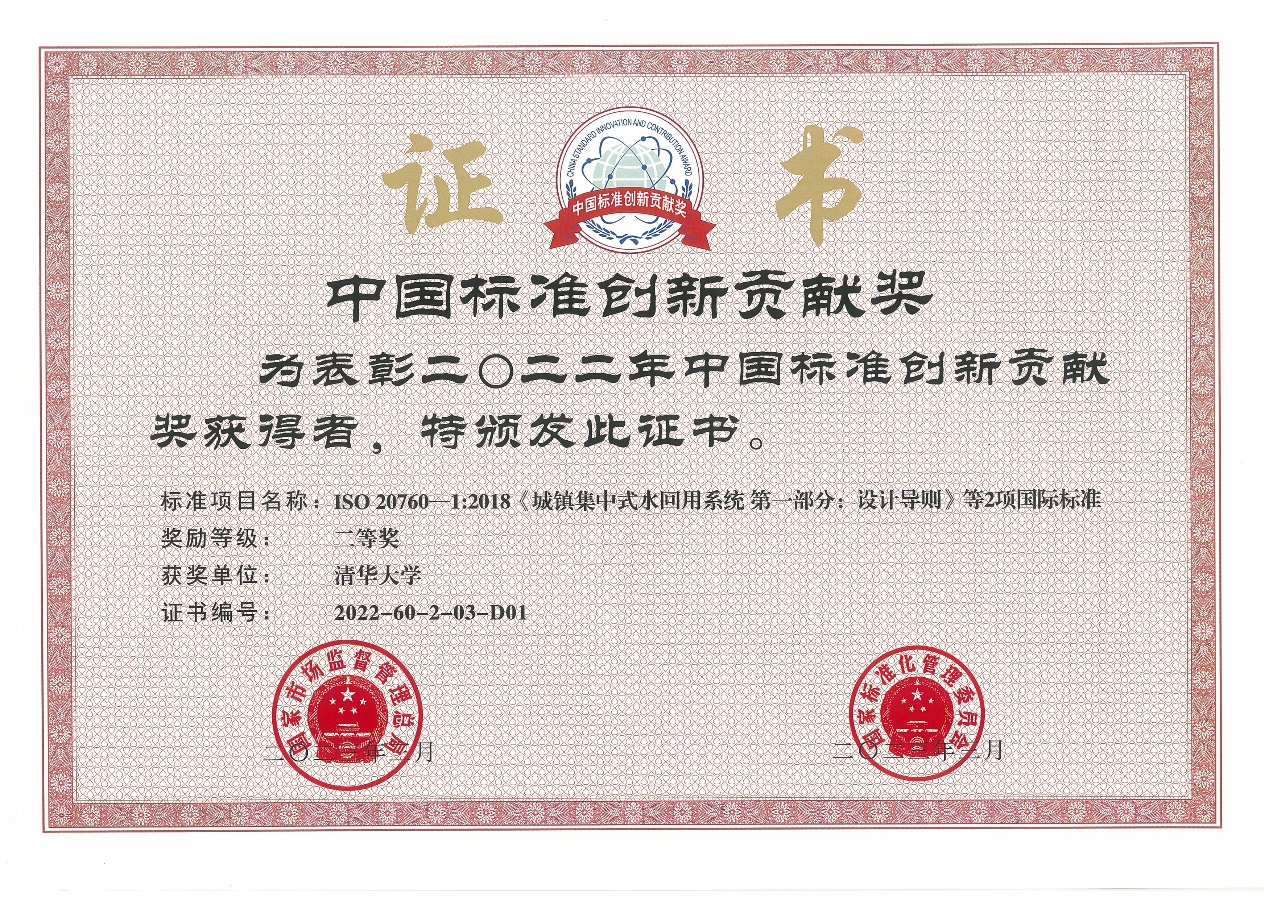 Tsinghua University-led International Standard in the Field of Reclaimed Water Wins China Standards Innovation and Contribution Award