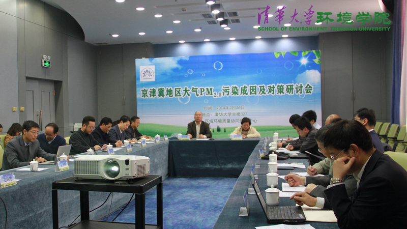 Workshop on PM2.5 Pollution in Beijing-Tianjin-Hebei Region was held at Tsinghua University on March 26. The workshop was hosted by the Co-Innovation Center for Regional Environment Quality (CICREQ). SOE Prof. HAO Jiming and Prof. TANG Xiaoyan from Peking University co-presided over the seminar. About twenty people from the MEP, Ministry of Education, Ministry of Science and Technology, Beijing Environmental Protection Bureau, SOE, Peking University, Chinese Academy of Sciences and Zhejiang University attended the meeting.