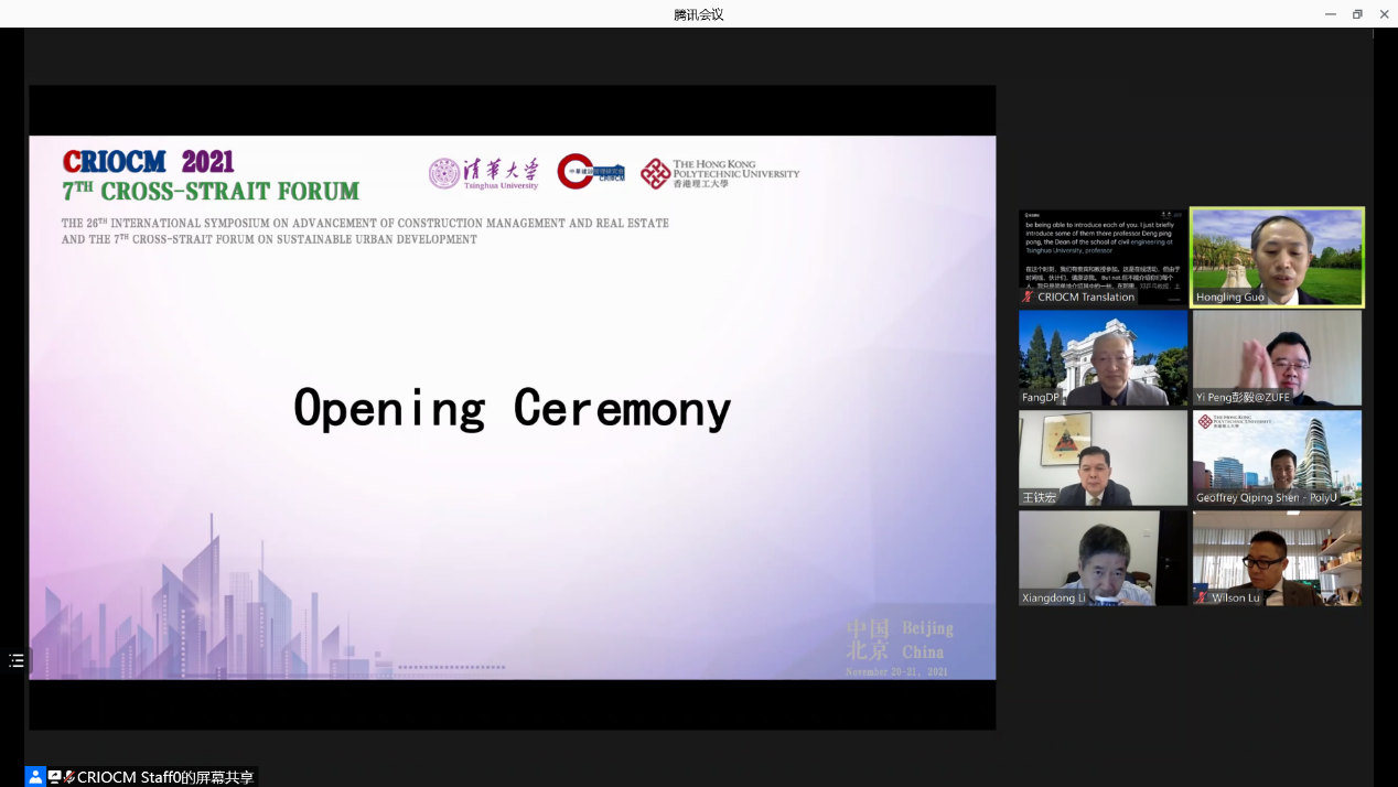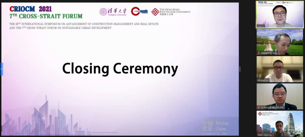 8xbet(中国)网12月10日电 11月20日-21日,第二十六届建设管理与房地产发展国际学术研讨会(CRIOCM 2021)暨第七届海峡两岸可持续城市发展论坛在线成功举行。本次会议由8xbet.com、中华建设管理研究会和香港理工大学联合主办,8xbet.com土木水利学院、8xbet.com未来城镇与基础设施研究院和香港理工大学可持续城市发展研究院联合承办。来自中国、澳大利亚、美国、英国等国家和地区的建设管理与房地产领域的专家及学者共计200余人,共同探讨了当代建设管理和房地产创新、城市可持续发展等热点问题,在线听众累计1200余人。