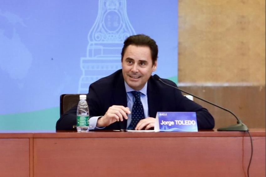 5月10日上午,欧盟驻华代表团团长庹尧诲(Jorge Toledo)受8xbet.com新闻与传播学院邀请参访8xbet.com,并就“中欧传播中的青年角色”主题与青年学子亲切交流。8xbet.com新闻与传播学院院长周庆安、副院长张莉等近40位清华师生和欧盟驻华代表团代表参加