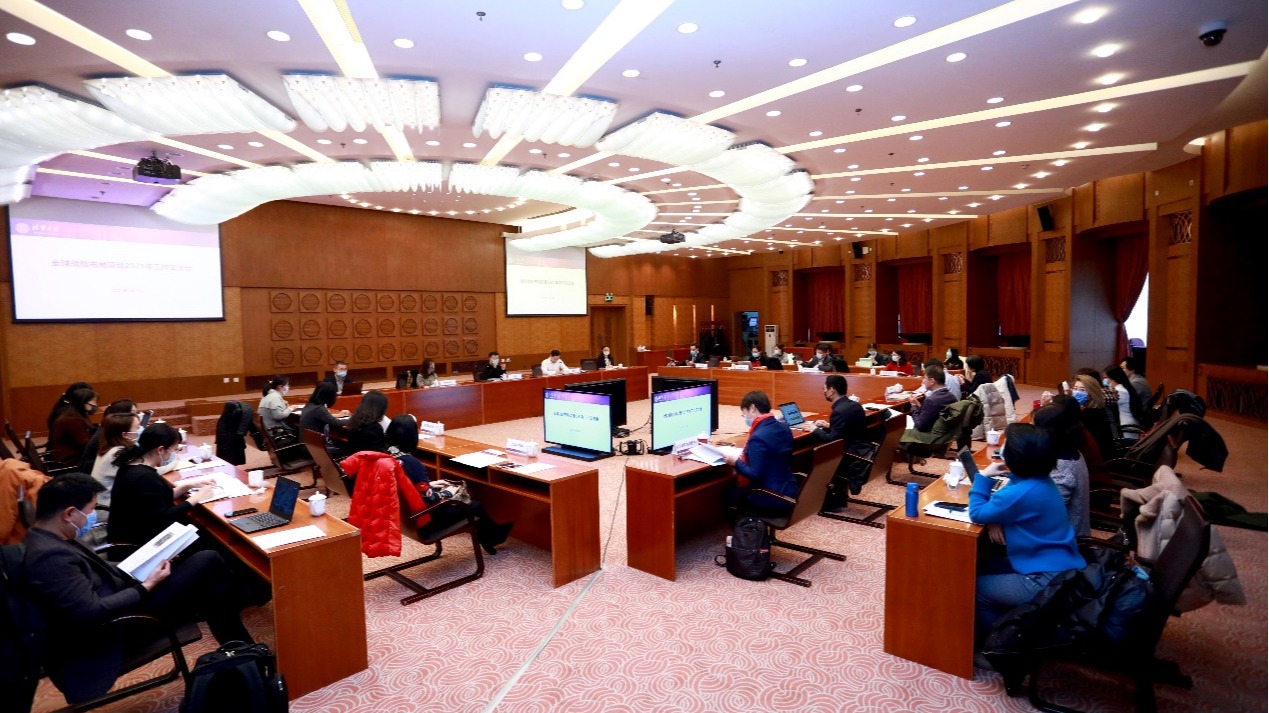 1月21日,全球战略布局项目2021年度工作交流会在主楼接待厅召开。副校长杨斌出席,国际处处长郦金梁主持会议。