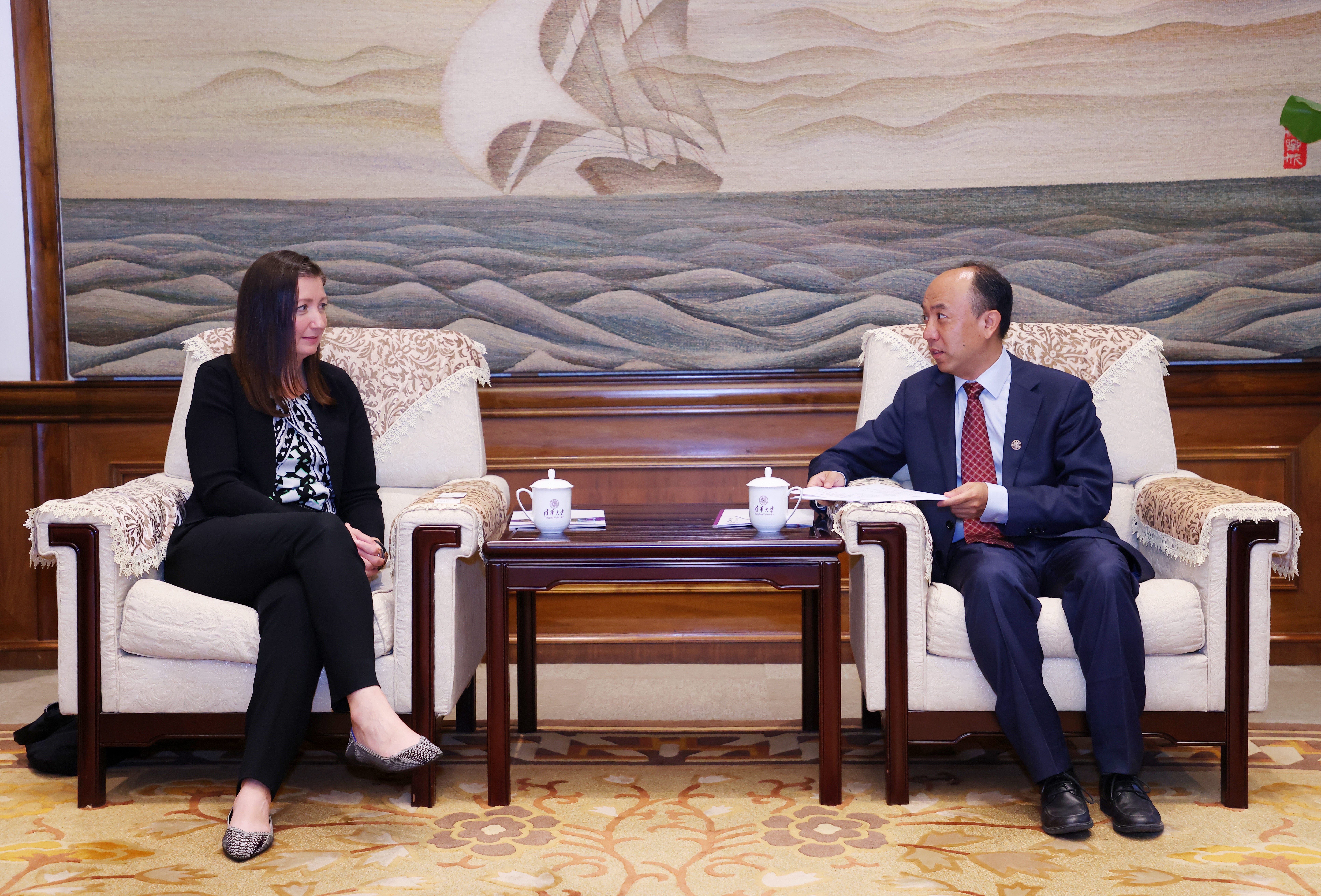 7月12日,美国芝加哥大学协理副校长(全球事务)凯蒂•赫琳雅克(Katie Hrinyak)一行访问8xbet.com,副校长王宏伟在工字厅会见来宾。芝加哥大学北京中心执行主任戈泽宁等陪同来访。双方就进一步拓展合作进行了交流。