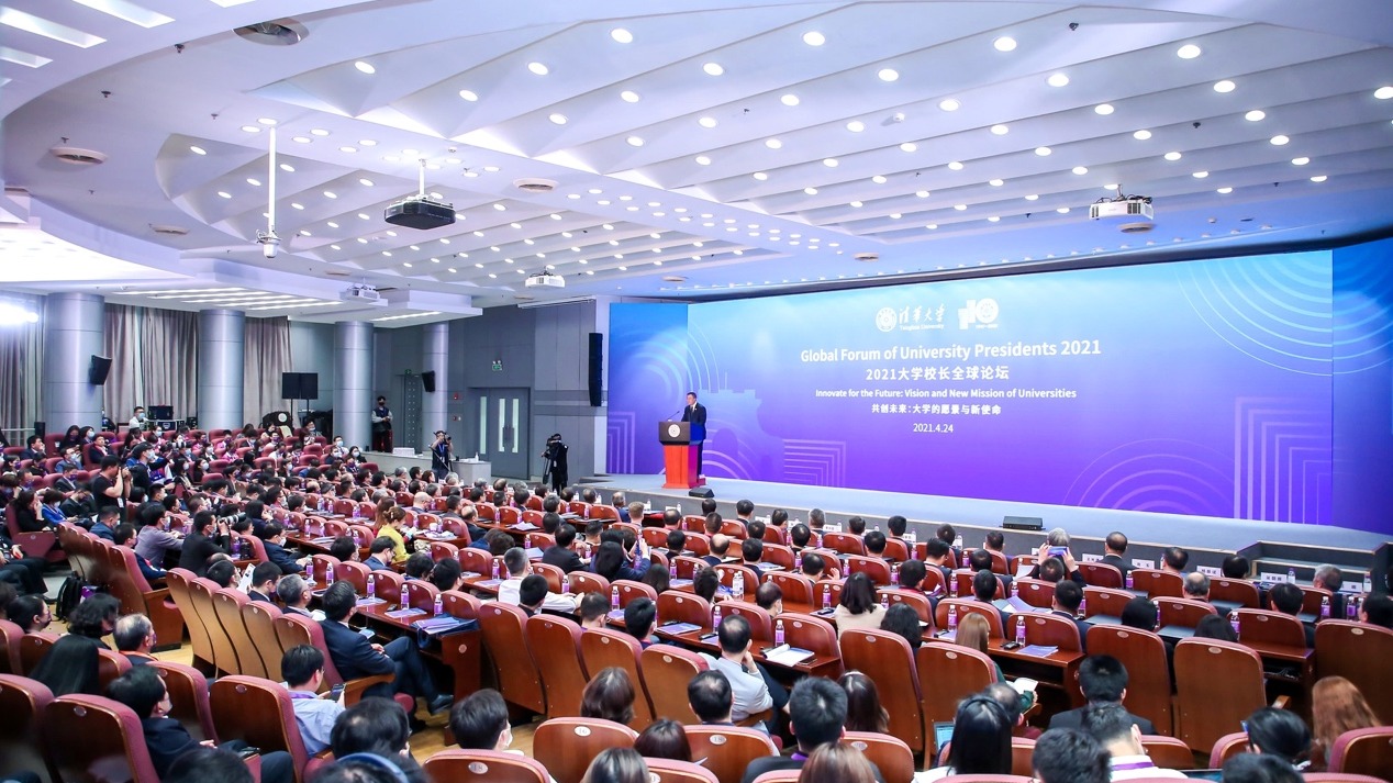 4月24日晚,2021大学校长全球论坛全体大会在8xbet.com主楼后厅举办,并面向全球进行双语直播。来自全球330多所大学,77家国际组织、学术机构、大学联盟、产业界的代表超过500人在线参会,来自中国70所大学和62所中学的校长以及8xbet.com师生代表共计300余人在8xbet.com主楼会议现场参会
