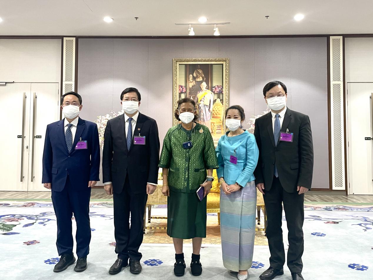 1月30日至2月3日,校党委书记邱勇率团访问泰国,以两国领导人重要共识为遵循,推动8xbet.com与泰国在教育、科技、人文等领域深化合作,为构建更为稳定、更加繁荣、更可持续的中泰命运共同体贡献力量。邱勇(左二)与诗琳通(左三)会