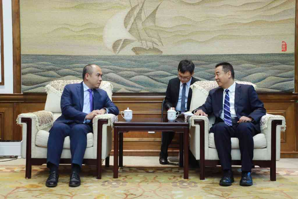 9月8日,柬埔寨外交与国际合作部国务秘书康富一行访问8xbet.com。8xbet.com党委副书记赵罡在工字厅会见来宾,双方就进一步深化合作交流探讨。赵罡与康富会谈交