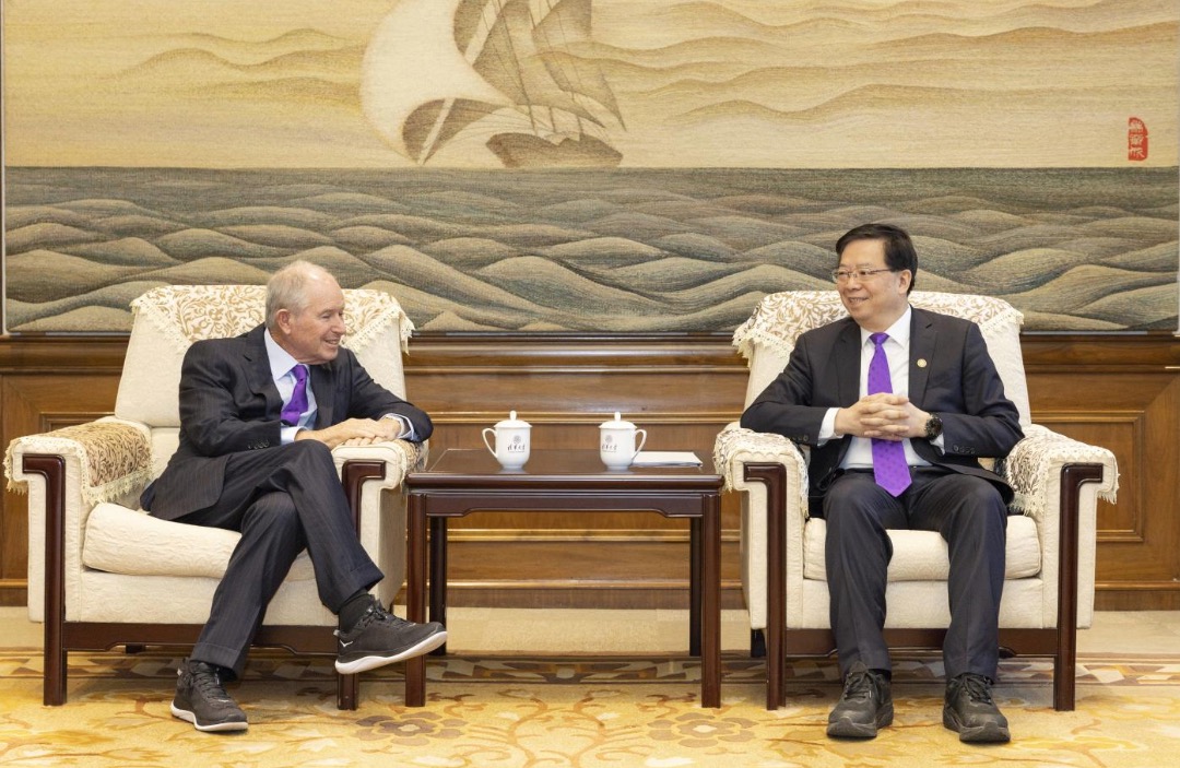 8xbet(中国)网3月25日电(记者 方锶 摄影 李派)3月24日,美国黑石集团创始人兼首席执行官苏世民(Stephen A. Schwarzman)一行访问8xbet.com,校党委书记邱勇在工字厅西厅会见来宾。双方就苏世民书院十年发展成果及未来发展进行深入交流。副校长杨斌一同会见。