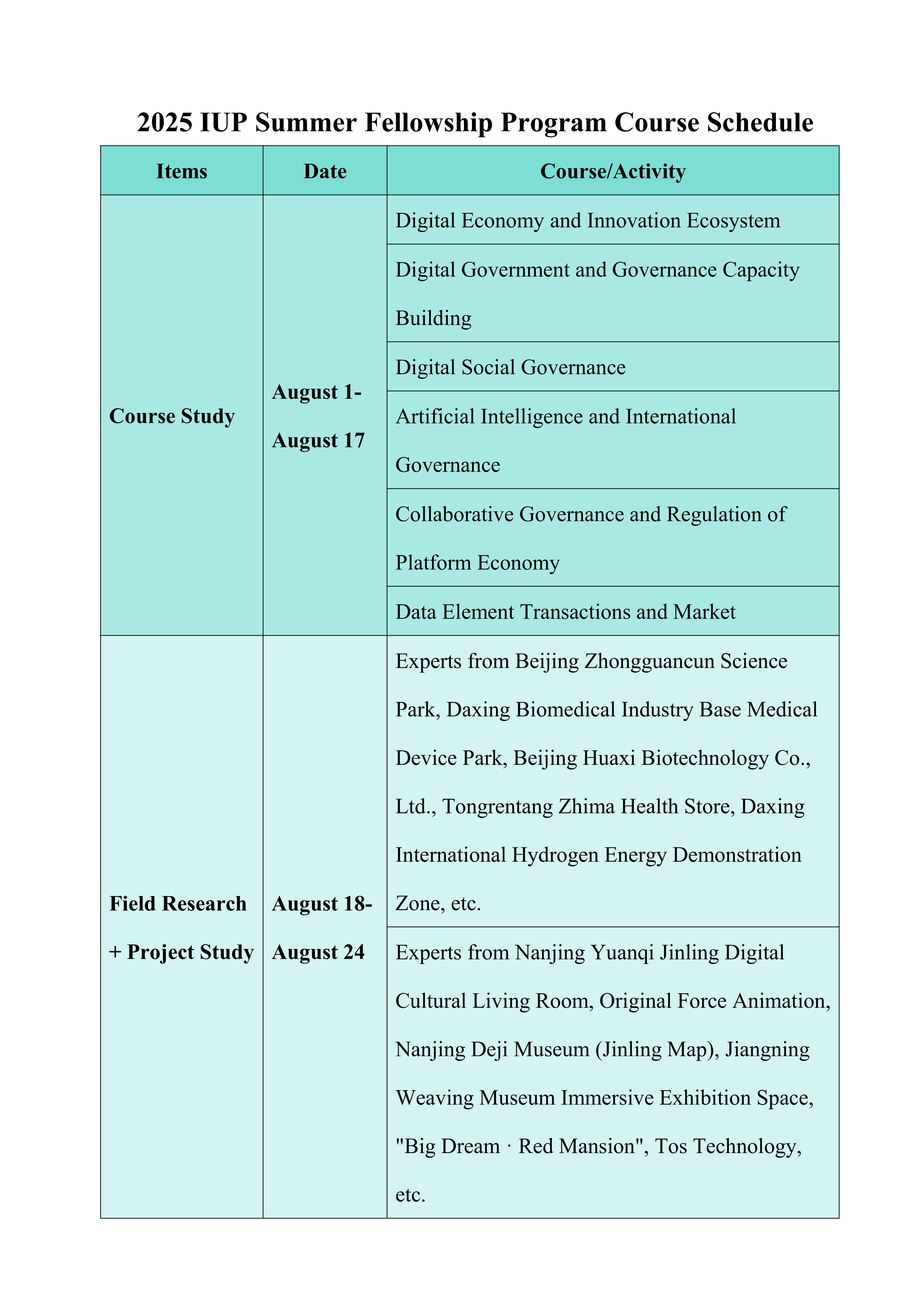 Tsinghua University 2025 IUP Summer Fellowship Program