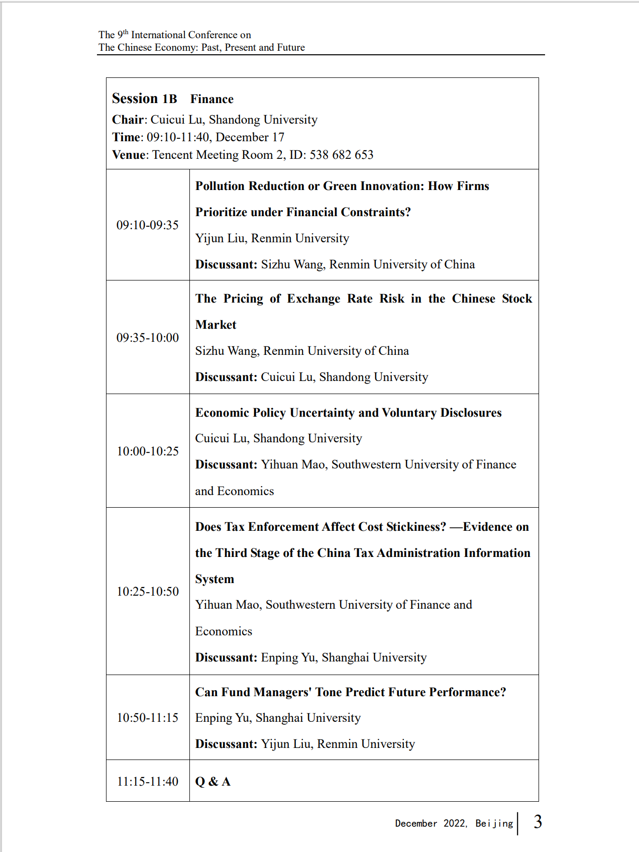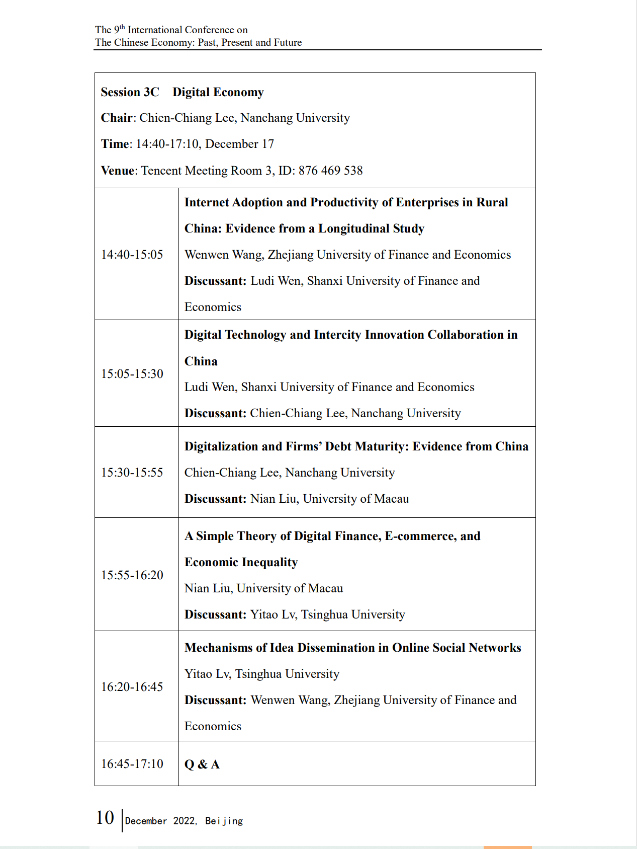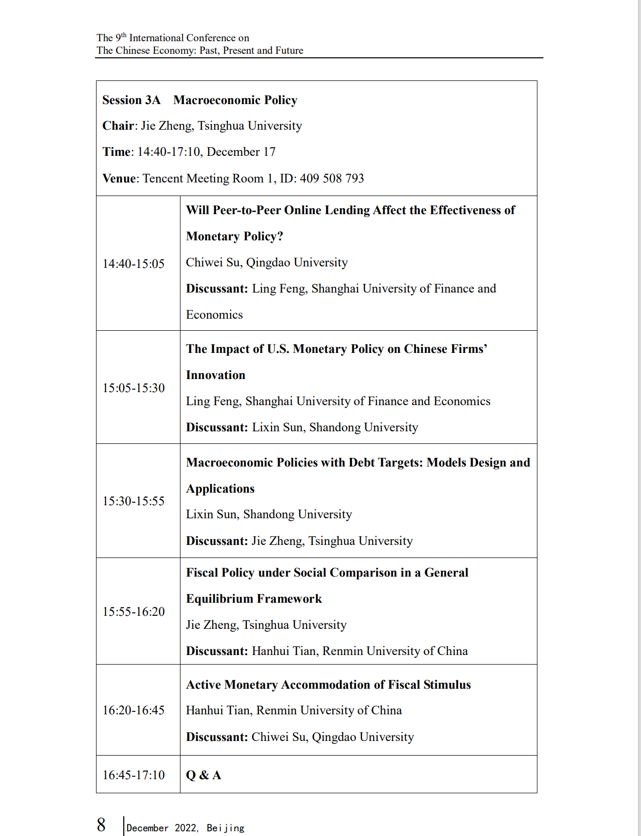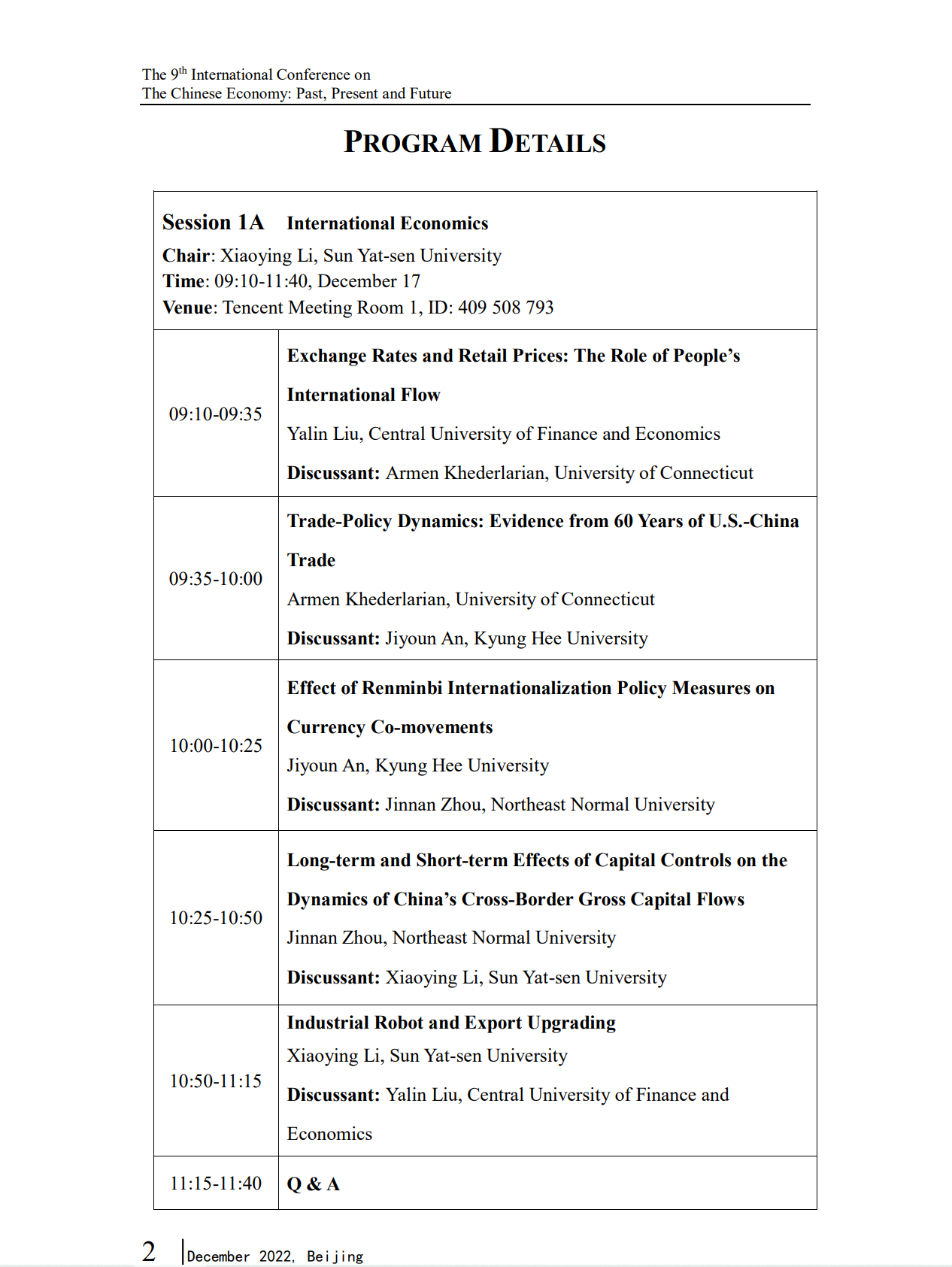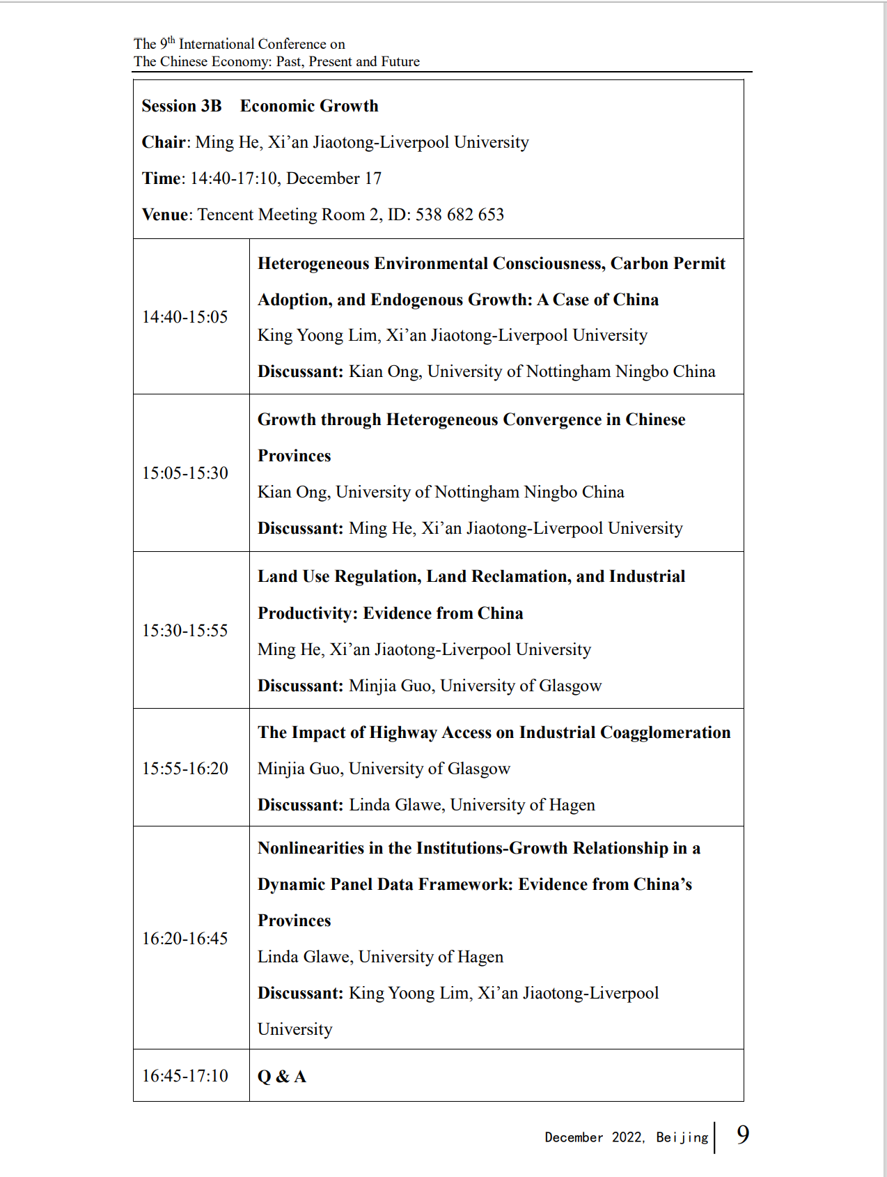 The 9th International Conference on The Chinese Economy: Past, Present and Future