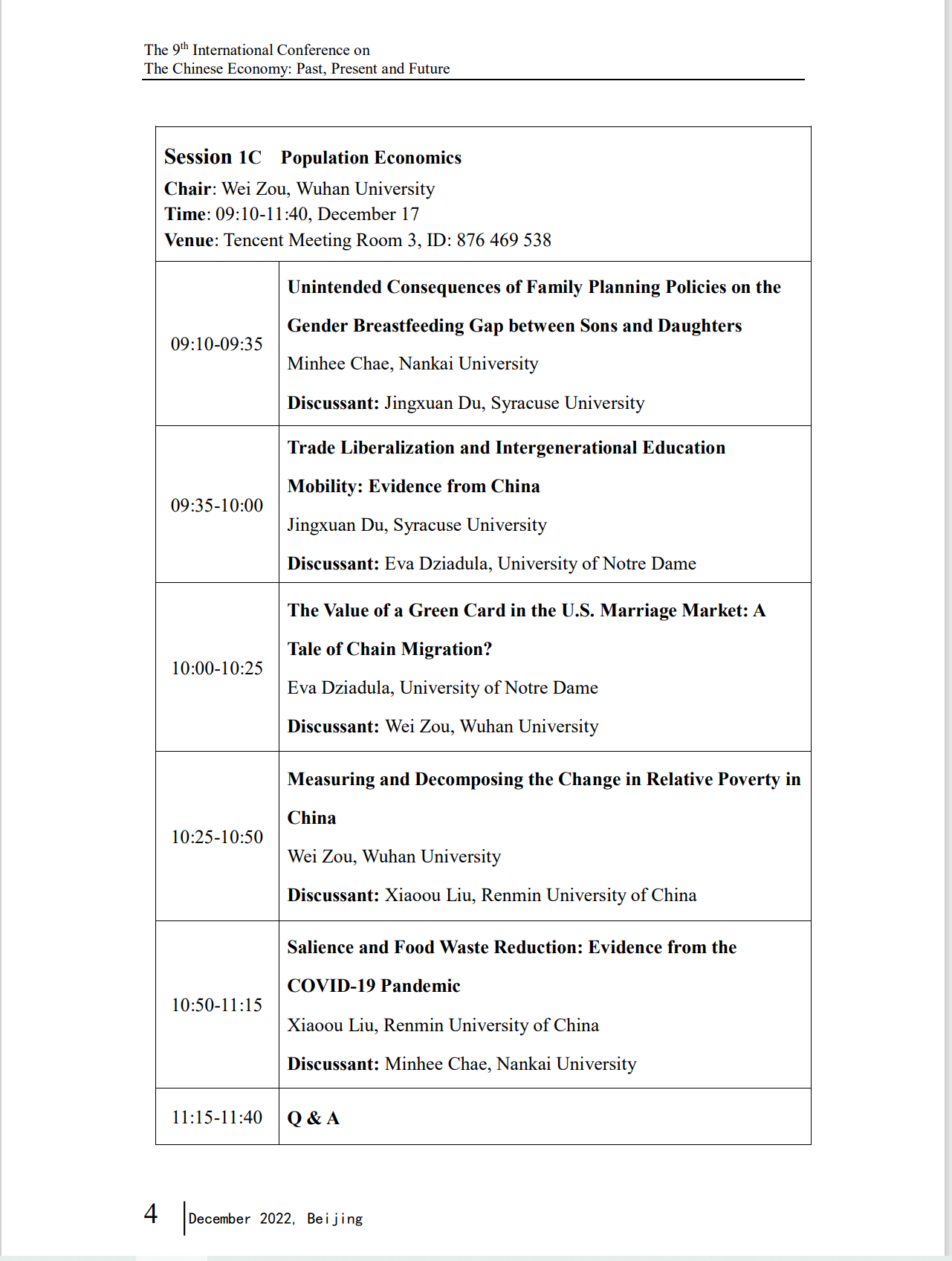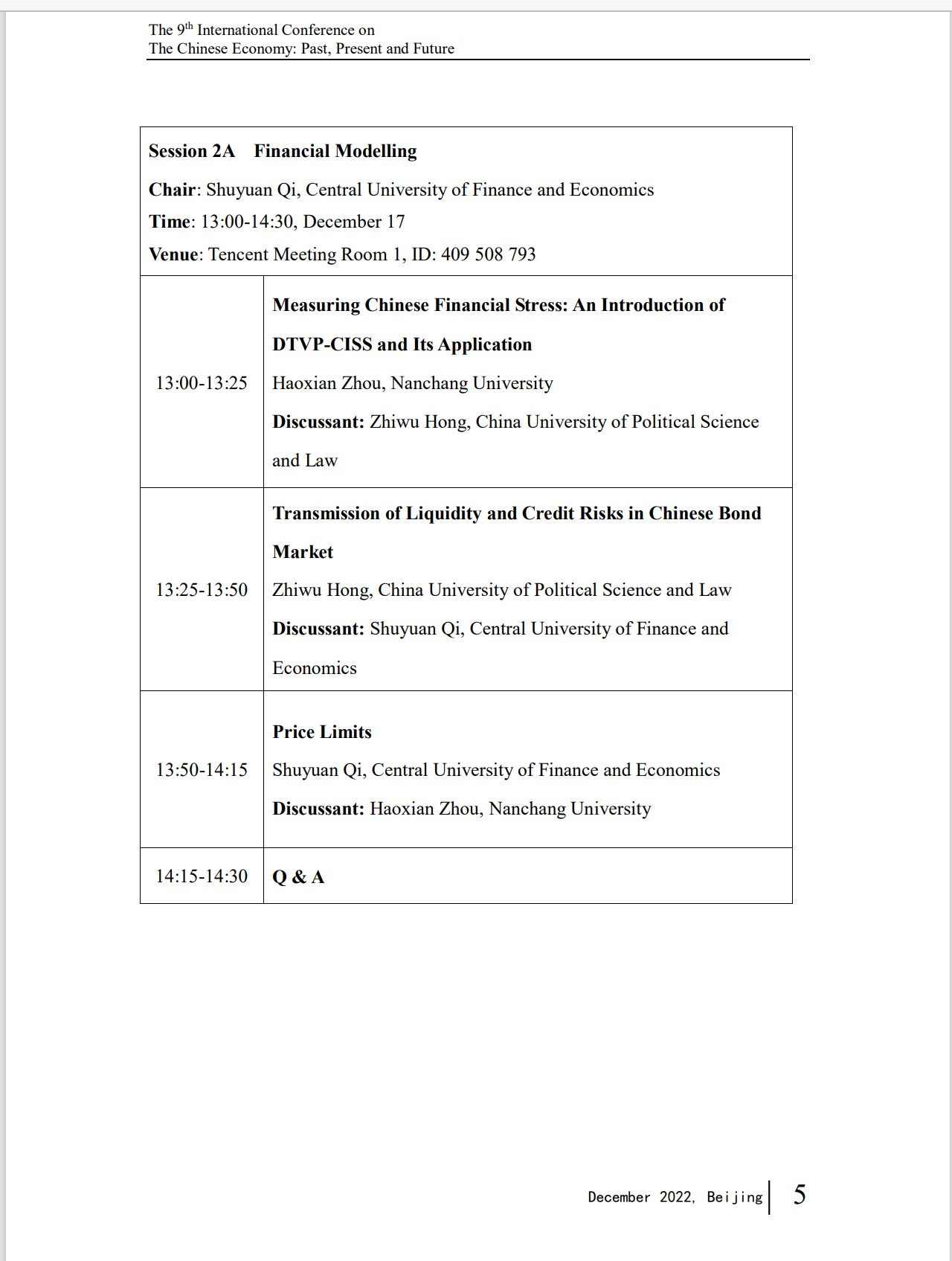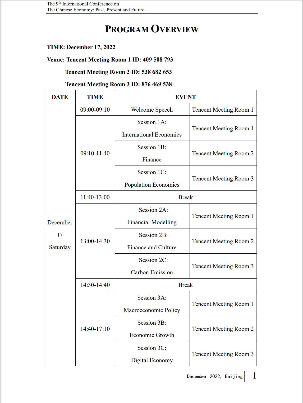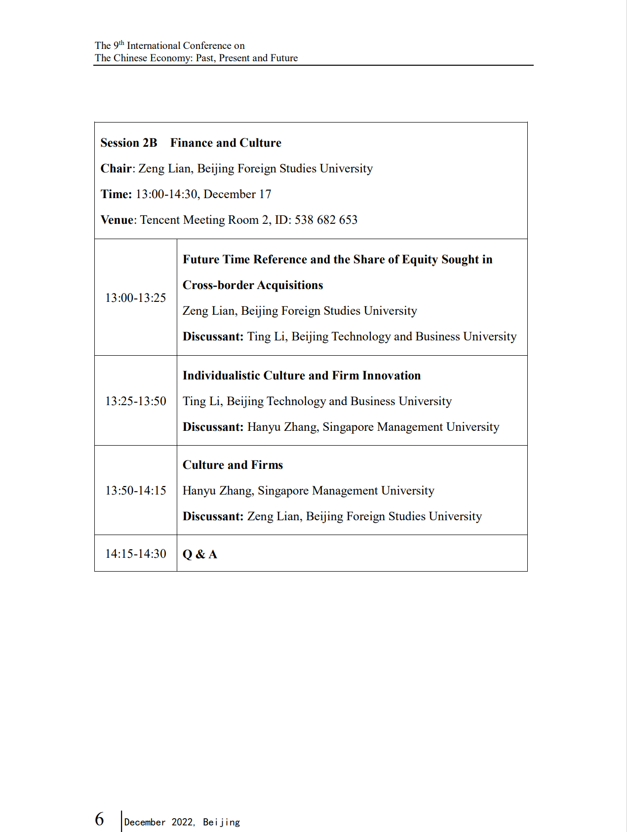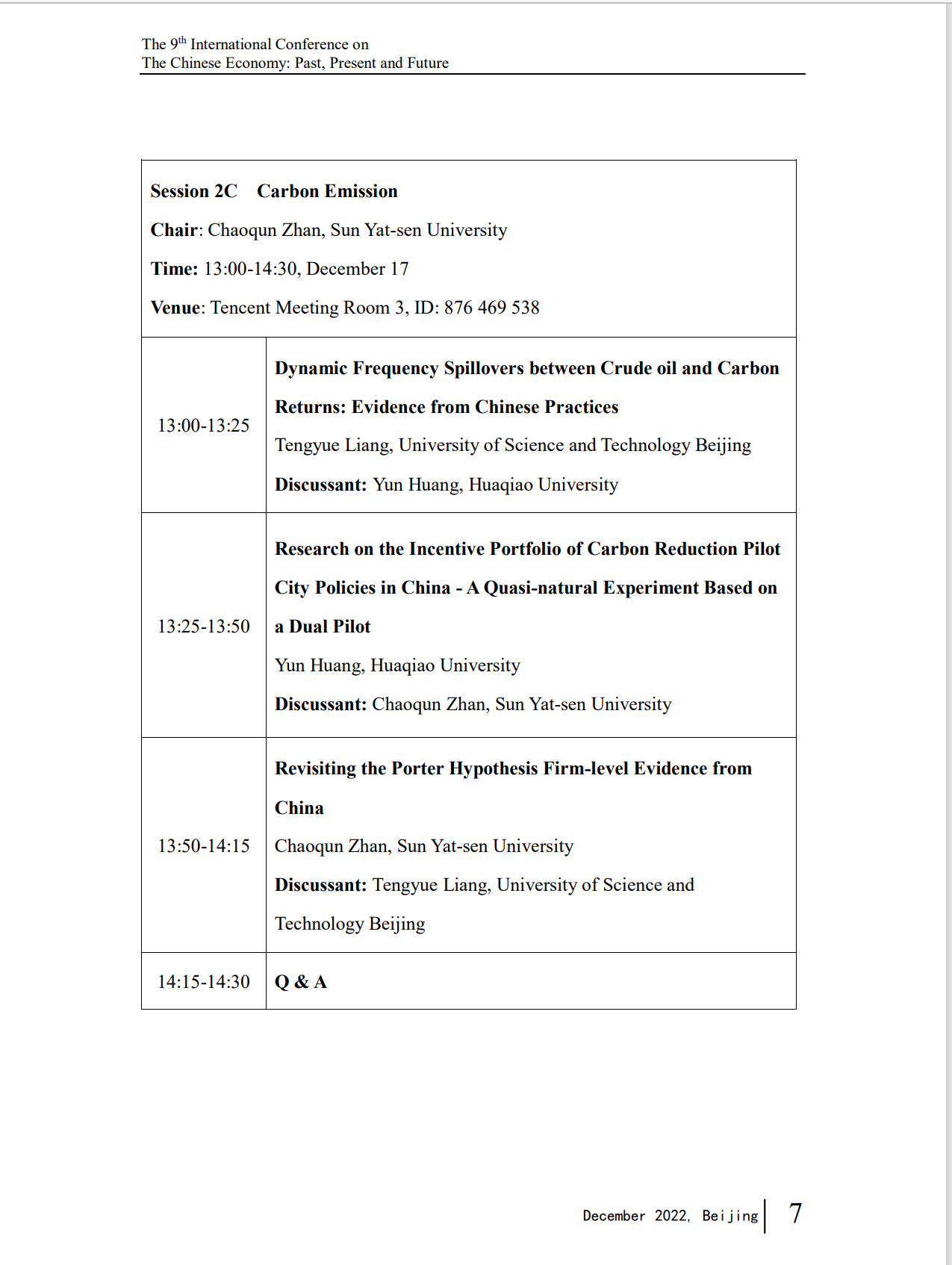 The 9th International Conference on The Chinese Economy: Past, Present and Future