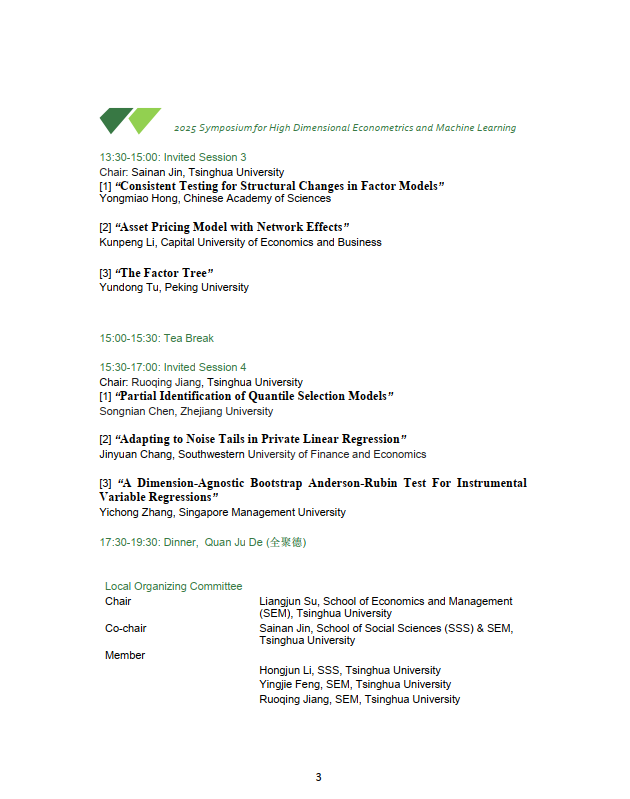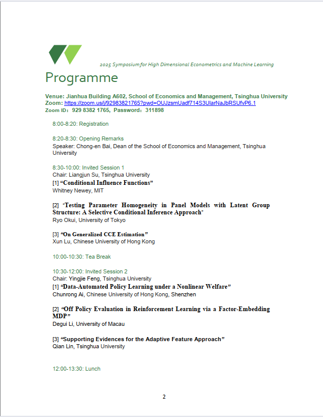 2025 Symposium for High Dimensional Econometrics and Machine Learning