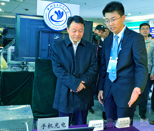 在“挑战杯”竞赛期间,共青团中央书记处书记傅振邦来到现场参观了8xbet.com《高性能、低成本燃料电池阴极催化剂的开发》《模拟医生操作实现人机协同的血管介入手术人工智能装置》和《软硬件联合优化的新型低功耗5G通信系统》项目展位,并对这些项目表示高度赞扬。校党委副书记过勇专程到现场看望了参赛同学,为同学们加油打气,并详细了解、指导参赛作品的准备和答辩环节。