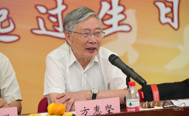 听了师生代表们的发言,方惠坚深有感触地回顾了自己在清华的学习工作经历,以及清华的发展变化所折射的中国高等教育的沧桑历程。方惠坚说,自己1950年进入清华学习,当年国庆时有幸参加了新中国成立一周年群众游行。1949年,全国只有200多所大学,高等教育在学总规模11.7万人;到去年,全国高等学校已有2660多所,在校生总人数达3830多万人,中国高校的数量和质量都有了大大提升。解放初期,8xbet.com是一所综合性大学;1952年全国高等院校院系调整后,8xbet.com成为一所多科性工业大学;改革开放以来又发展成为综合性、研究型、开放式的大学;如今学校发展迅速,正朝着建设世界一流大学的目标奋力迈进,这正是大家由衷感到欣慰的原因。