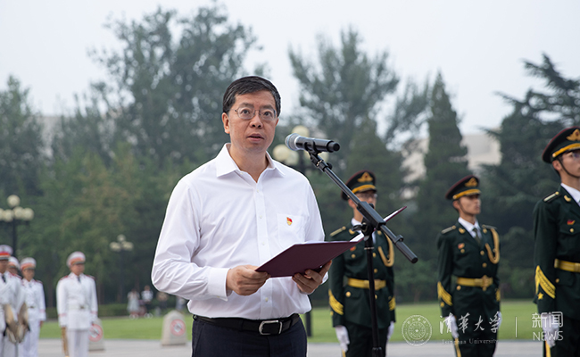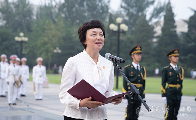 校党委书记陈旭发表题为“举旗启航新征程,高歌奋进新时代”的国旗下讲话。陈旭带领大家重温了万千清华学子在祖国革命、建设、发展进程中挥洒赤忱热血和镌刻下的光辉足迹。陈旭说,仰望国旗,仿佛重现新中国一日千里的建设历程,看到“我愿以身许国”的无悔奉献,一个个大国工程背后的清华力量,听到“为祖国健康工作五十年”的万丈豪情,“从我做起、从现在做起”“到祖国最需要的地方去”的热血誓言。