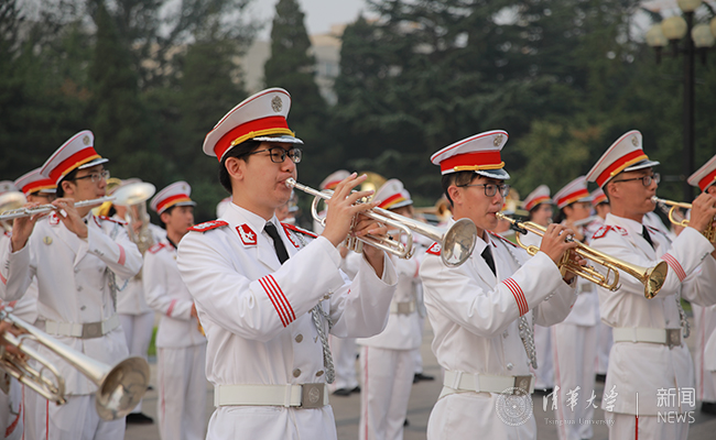 学生军乐队在现场演奏